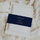 Add a finishing touch to your wedding mailings with these modern and elegant wedding invitation belly bands, featuring gold typography on a rich navy background.