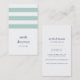 Modern and chic business card design in a unique vertical format features three wide pastel mint green stripes on a white background, with your name and business name or title in an attractive mix of lowercase serif and modern caps typefaces. Add your full contact information to the back in navy blue lettering. Suitable for any occupation; example shown for interior design professions.