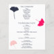 Create a bold and elegant program for your wedding. Make a statement with bold colors and a clean and simple graphic. Features illustrations of ginkgo leaves in navy blue, light blush pink and a bright coral tinged magenta.
