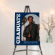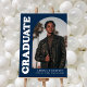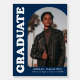 Celebrate the graduate in style with this modern arch photo graduation party sign! The sign features the graduate's photo displayed in an offset navy arch frame. "Graduate" is featured in bold white retro lettering displayed along the side of the design. Personalize the navy graduation sign with the graduate's name, school, and graduation year. This stylish graduation sign is perfect for both high school and college graduations.