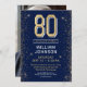 Modern Navy Blue 80th Birthday Photo Invitation