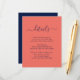 Provide your guests with important details with this elegant modern navy blue and coral wedding enclosure card featuring a modern script font. Matching items available.