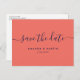 Modern Navy Blue and Coral Wedding Save The Date Announcement Postcard