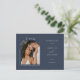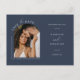 This save the date engagement announcement invitation postcard features an elegant calligraphy and simple typography font with an arch shape heading and photo on a navy blue background and QR Code. The simplicity of this design adds a touch of elegance to your wedding save the date invitation cards. It works well with many wedding themes and definitely a great addition to your wedding. Just customize the names and wording in a few easy steps and personalize the invitation postcard with your photo of the happy couple and replace the QR Code with yours on the back to give your postcard a nice personal touch.
