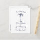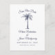 Ask your guests to save your wedding date with this simply elegant design featuring modern script, navy blue text and an artistic palm tree. Customize this announcement post card with your own "Save Our Date Phrase", names, wedding date and location on the front along with your message and return address on the back.