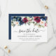 Modern Navy Blue Burgundy Red Peony Floral Wedding Save The Date