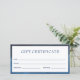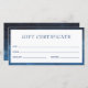 Modern business gift certificate featuring a simple design with a navy blue watercolor border. The backside has your logo and business information over a dark navy blue watercolor wash. This masculine and professional gift certificate works great for a business with a male customer base.