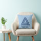 Add your navy blue color theme business logo image to a light blue throw pillow.