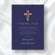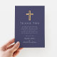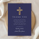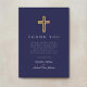 Modern Navy Blue Cross Boy Baptism Thank You Card