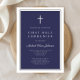 Modern Navy Blue Cross Boy First Communion Invitation
