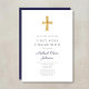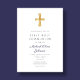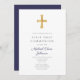 Plain white envelopes are included with paper invitations and will come to fit the invitation size you select. If you don’t need the envelopes, you may choose to not receive them by selecting the dropdown below "Envelopes" and choosing "None." If you’d like to have a design on your envelopes, you can browse all of these available envelopes to find the design that complements your Modern Navy Blue Cross Boy First Communion Invitation.
