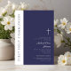 Plain white envelopes are included with paper invitations and will come to fit the invitation size you select. If you don’t need the envelopes, you may choose to not receive them by selecting the dropdown below "Envelopes" and choosing "None." If you’d like to have a design on your envelopes, you can browse all of these available envelopes to find the design that complements your Modern Navy Blue Cross First Holy Communion Invitation.