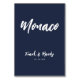For the modern and creative couple who wants to assign their favorite traveling locations to their wedding reception tables instead of just a number. Whether it is your favorite street name, city, state country traveling location; this simple but versatile design is for you! Elegant navy blue background and white typography are also customizable. Table card also features newlyweds names and wedding date.