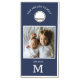 Modern Navy Blue Family Name Monogram 2 Photo Cornhole Set