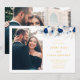 Modern Navy Blue Flowers & Yellow Photo Wedding Invitation