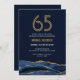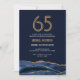Modern Navy Blue Gold Agate 65th Birthday Party Invitation