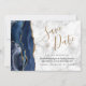 Modern Navy Blue Gold Agate Marble Save the Date Invitation