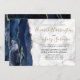 Modern Navy Blue Gold Agate Marble Wedding Invitation