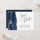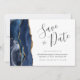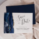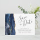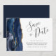 Modern Navy Blue Gold Agate Save the Date Invitation