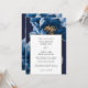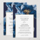 Modern Navy Blue Gold Floral All In One Wedding Invitation