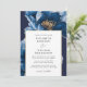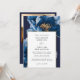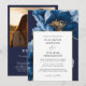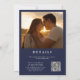 Modern Navy Blue Gold Floral Photo QR Code Wedding Invitation