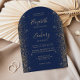 Modern Navy Blue Gold Glitter Edge Arch Wedding Invitation