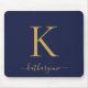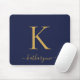 Modern Navy Blue Gold Monogram Script Mouse Pad