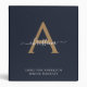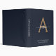 Modern Navy Blue Gold Monogram Script Name Initial 3 Ring Binder