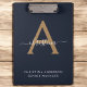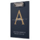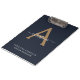 Modern Navy Blue Gold Monogram Script Name Initial Clipboard