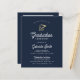 A modern navy blue graduation ceremony card. The text details and image can be personalized.