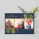 Modern Navy Blue Merry Christmas Script Pine Photo Foil Holiday Card
