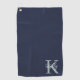 Modern Navy Blue Monogram Script Golf Towel