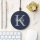 Modern Navy Blue Monogram Script Wireless Charger