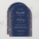 Modern Navy Blue Peach Glitter Arch Wedding Invitation