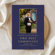Modern Navy Blue Photo Boy First Communion Gold Foil Invitation