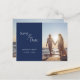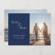 Modern Navy Blue Photo Save the Date Card. A classic navy blue panel paired with your engagement photo creates a timeless Save the Date. This elegant design is ideal for formal, nautical, or evening weddings, blending tradition with clean, modern lines.