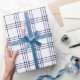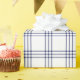 A wrapping paper designed with a modern navy blue plaid pattern on white in large size. Customize the white background among other options.