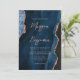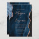 Modern Navy Blue Rose Gold Agate Script Wedding Invitation