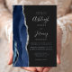 Modern Navy Blue Silver Agate Dark Wedding Foil Invitation