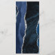 This elegant, modern wedding menu features a watercolor navy blue agate background trimmed with silver faux glitter. The text appears in elegant silver gray handwriting and sans serif fonts on an off-black rectangle. The agate design is repeated on the reverse.