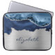 Modern Navy Blue Silver Agate Metallic Laptop Sleeve