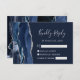 Modern Navy Blue Silver Agate Wedding RSVP Card