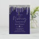 Modern Navy Blue Silver Dripping Glitter Wedding