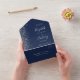Modern Navy Blue Silver Glitter Wedding All In One Invitation
