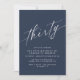 Yes, you can print on the back of your invitation for free! Most designs already have a corresponding design on the back that can be personalized using the Design Tool and going to Layers. This is a great way to communicate more information or further personalize your Modern Navy Blue Simple Script 30th Birthday Invitation. The option is really up to you.