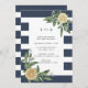Modern Navy Blue Stripe Watercolor Lemon Invitation