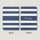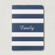 Personalized Modern Navy Blue Stripes Passport Holder.