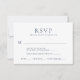 Modern Minimalist Wedding RSVP depicts navy blue text on a white background. They feature accepts, declines, number attending and meal choices.