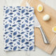 Elegant navy blue and white watercolor leaf pattern kitchen towel.
