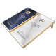 This custom wedding cornhole table set includes two matching boards designed with a modern navy and white theme. One board features a deep navy blue and dark gray marble-style background with crisp white fonts for a bold, elegant look. The other has a white and light gray background with sleek black fonts, creating a clean contrast and giving the overall set a stylish, coordinated feel. Each board displays "Mr. & Mrs. [Last Name]" along with the bride and groom’s names and wedding date, making it a personalized piece for your celebration. Perfect for wedding receptions, cocktail hours, or backyard gatherings, this set adds a fun and memorable touch to your big day. All text and colors can be customized to match your wedding style.